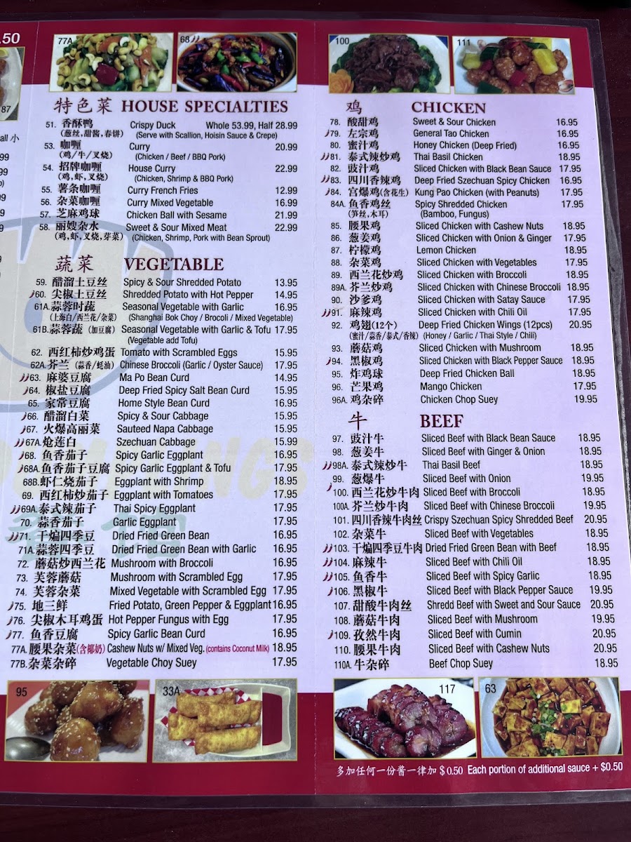 Garlic, oyster sauce. add each portion of additional sauce for an additional charge.