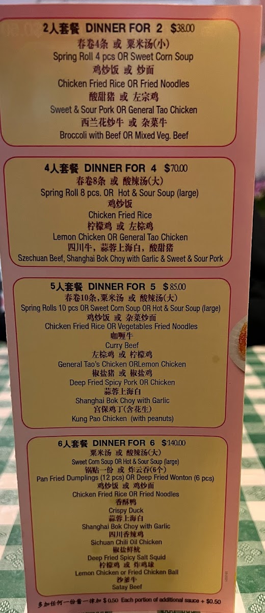 Chinese Dumplings Menu